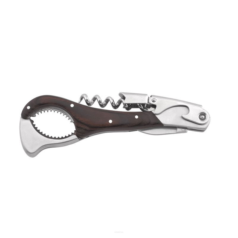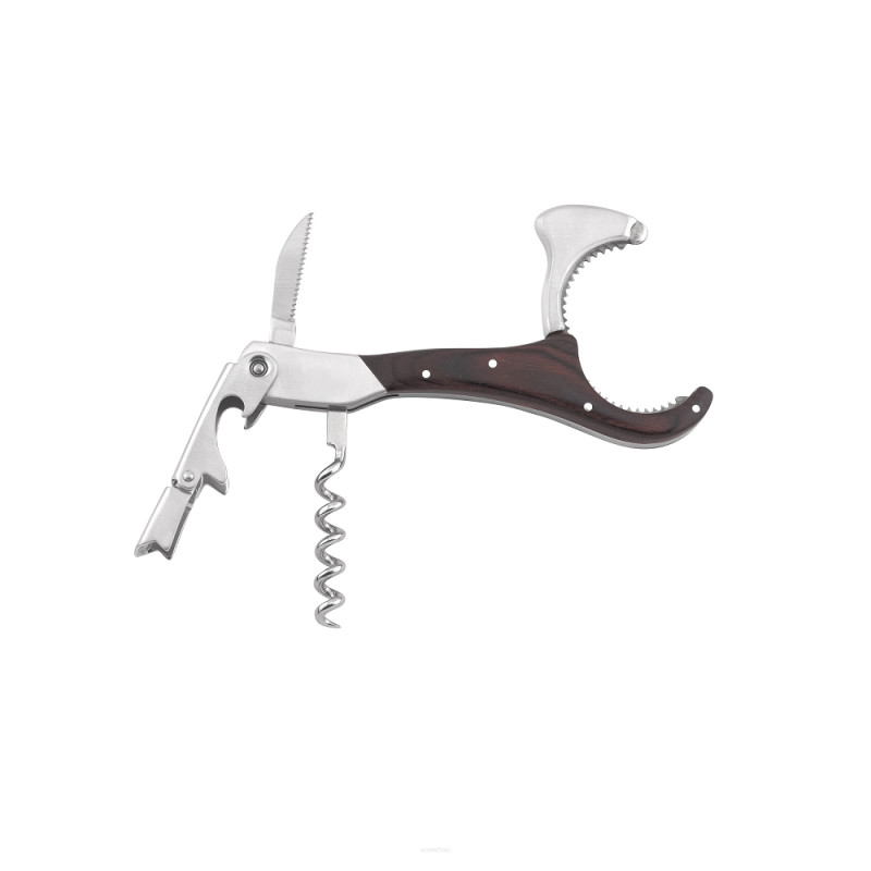 Profesjonalny korkociąg 4 w 1 ze szczypcami do szampana, nożem do przecinania foli i otwieraczem do kapsli.