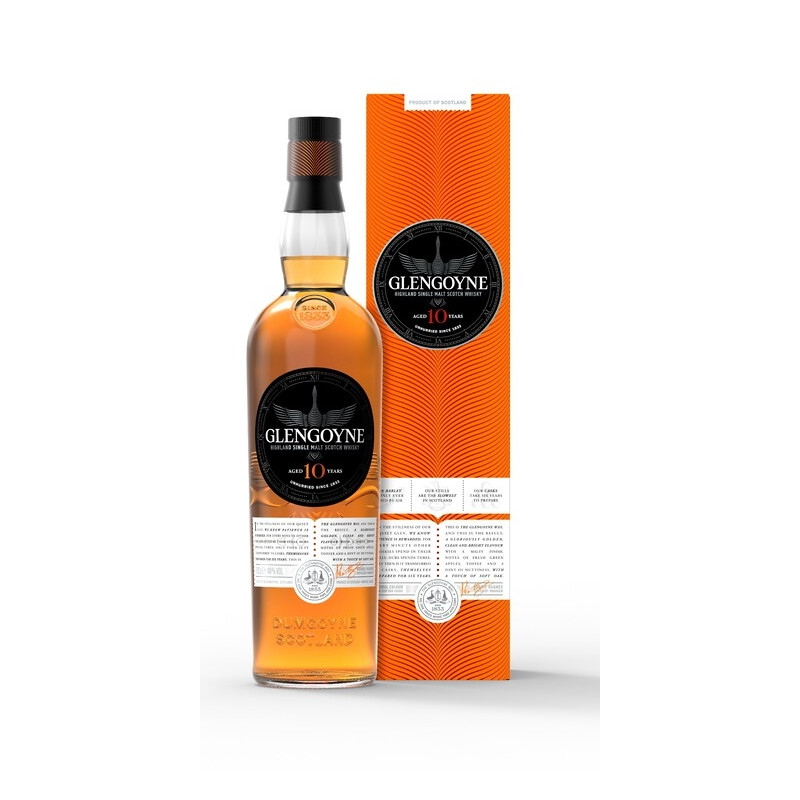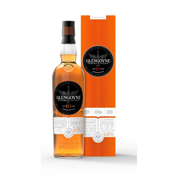 Aromat delikatnie ziołowy z nutą wanilii i soczystej brzoskwini oraz cukierków krówek. W ustach dużo słodyczy, wanilia, pomarańcza, kokos, karmel i gałka muszkatołowa. Długa końcówka. Glengoyne 10yo to najmłodsza edycja z portfolio destylarni. 15% beczki z dębu europejskiego ex-sherry pierwszego użycia 15% beczki z dębu amerykańskiego ex-sherry pierwszego użycia 70% beczki refill