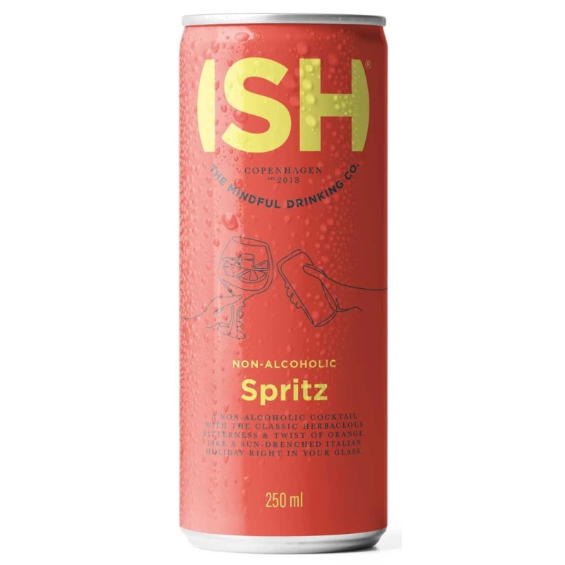 ISH Spritz to wielokrotnie nagradzany bezalkoholowy Spritz bazujący na francuskim korzeniu gencjany i włoskich cytrusach.