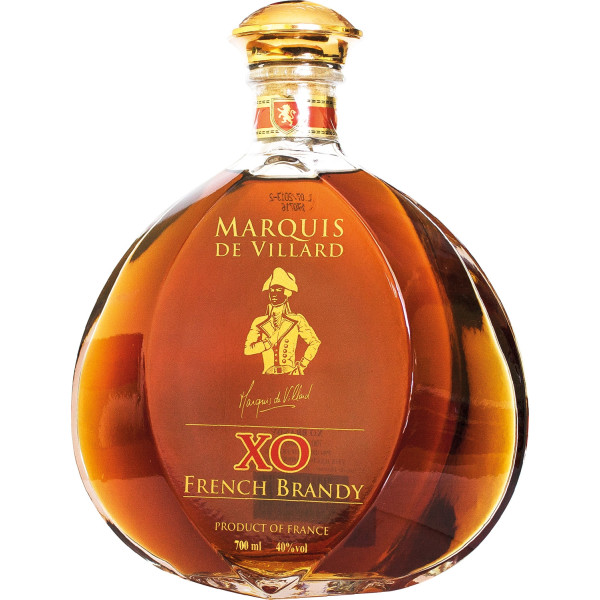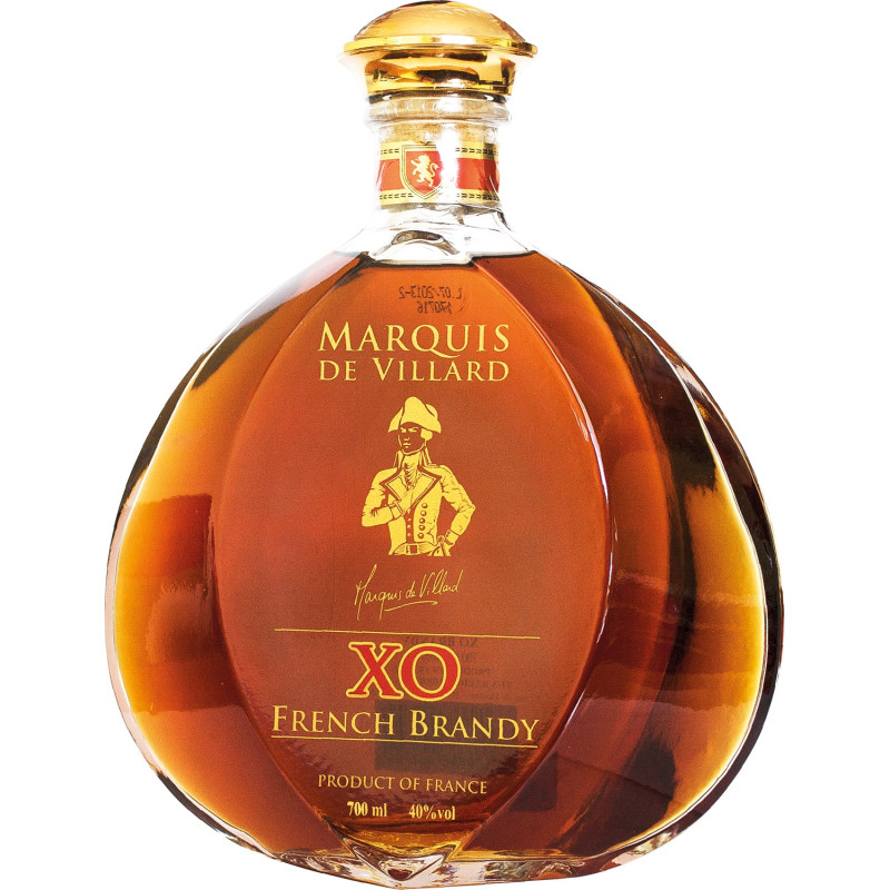 Marquis de Villard XO jest kompozycją wielu znakomitych eau-de-vie wytwarzanych z odmian Carignan, Grenache, Cabernet, Merlot i Ugni Blanc. Produkowany w Charente i leżakowany w dębowych beczkach zaskoczy Państwa wyjątkową gładkością i długim posmakiem. Wszystkie eau-de-vie użyte do produkcji są leżakowane minimum 3 lata, a część z nich wiele dłużej - tak aby średni wiek trunku wynosił ponad 5 lat.